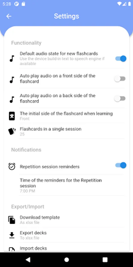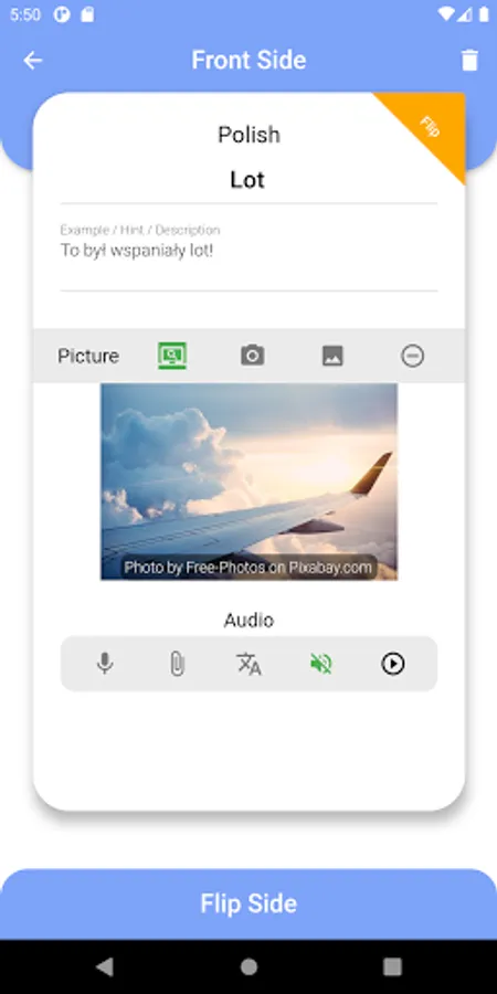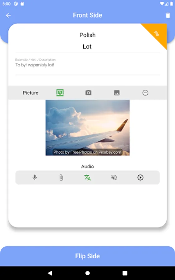 Learning a new language can be intimidating, but with effectLang's flashcard app, you can make it fun and easy. Our app offers a variety of features to help you learn, including integration with photo providers, the ability to add your own audio files or use text-to-speech technology, and the ability to provide examples, hints, or descriptions for each flashcard. You can even import and export flashcards using Excel files.