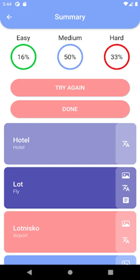 Our app uses a simple and straightforward system to help you practice new languages. You can use a spaced repetition algorithm for memorization or learn at your own pace.