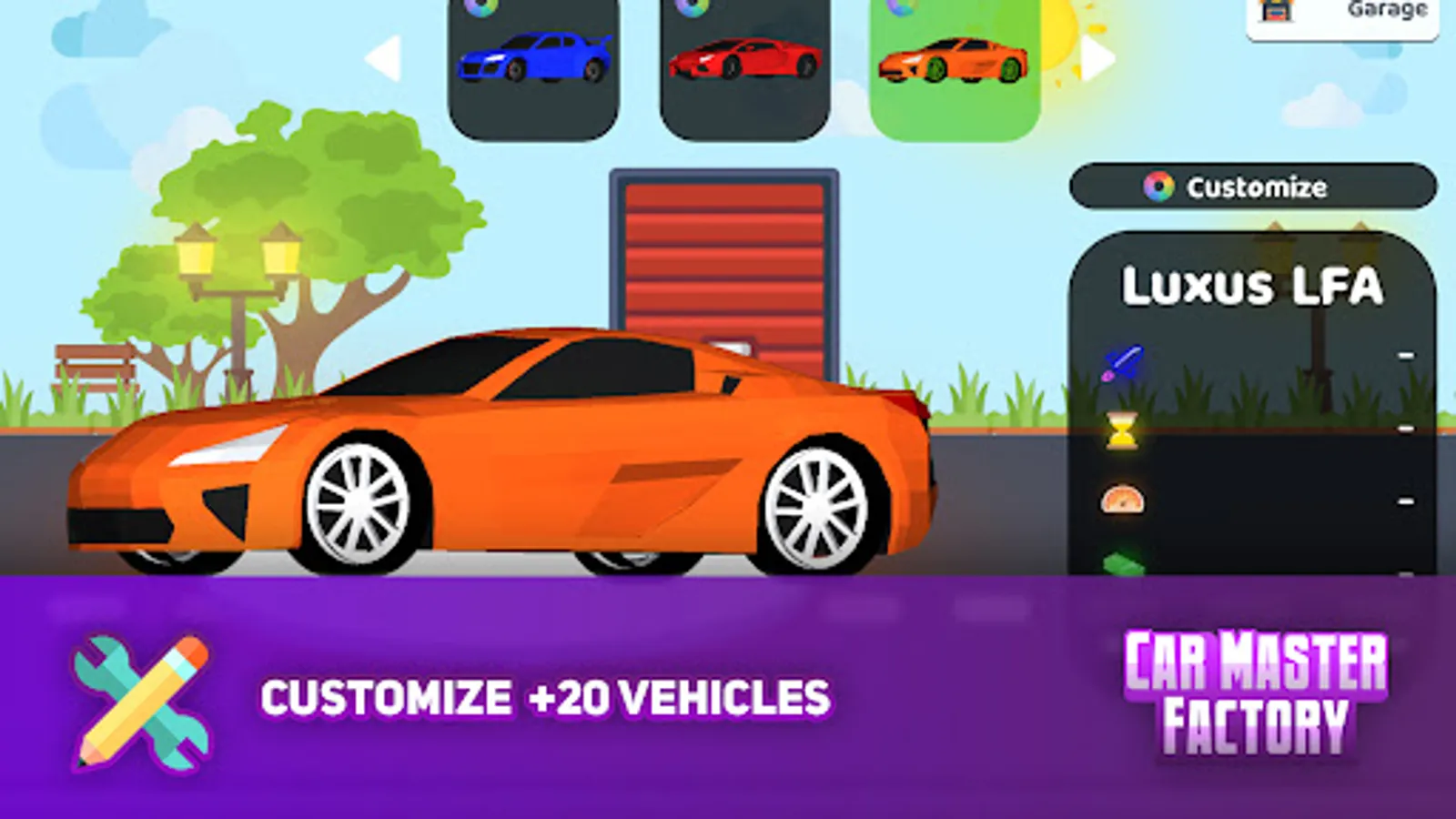Produce cars, upgrade garage, customize vehicles, get them all and be on top!