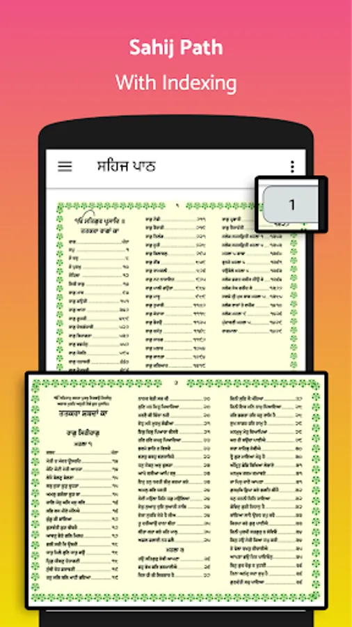 2. Sehaj path --> You need to do one-time download to do Sehaj path which will take less than one minute to download. After that, you can zoom in and out sehaj path text by with fingers while doing path. Moreover, Sehaj path will stay on the same page number where you left last time. In addition to it, Sehaj path is with indexing mean you can check that which pankti is on which page.
