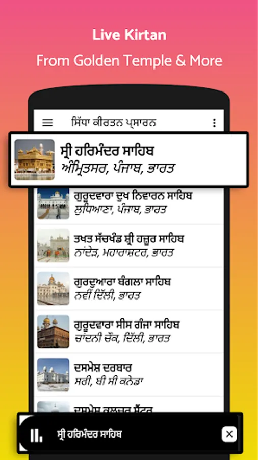 4. Live kirtan --> Listen Live Kirtan from Sri Harmandir Sahib || Golden Temple || 24/7 Live Shabad Kirtan and Listen to Kirtan Gurbani from World Gurdwaras Live Radio Stations. Listen to Nitnem, Listen to Akhand Path Sahib, and many more. This app lets people know about preachings of Sri Guru Granth Sahib Ji.
