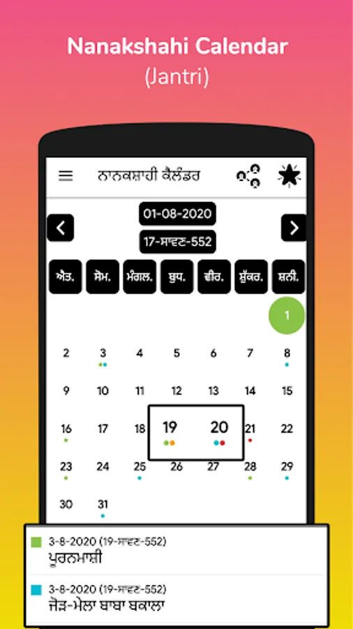 6. Nanakshahi Calendar 2020-2021 (Jantri) --> Nanakshahi Jantri or Nanakshahi calendar 2021 app is useful for people of Punjab and Punjabi speaking people across the world. This is available up to December 2021 for now.
