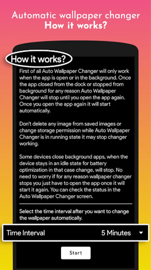 ЁЯСЙ Automatic wallpaper changer --> Automatic wallpaper changer is the most advanced app feature provided at totally free of cost. You can set saved wallpaper automatically as phone wallpaper. You just need to set a time interval after you want to change the phone wallpaper. You can add images from your device too in an automatic wallpaper changer.