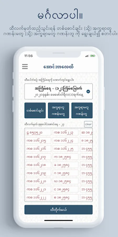 *** This app is developed and provided independent of the involvement of Myanmar Lottery. ***
