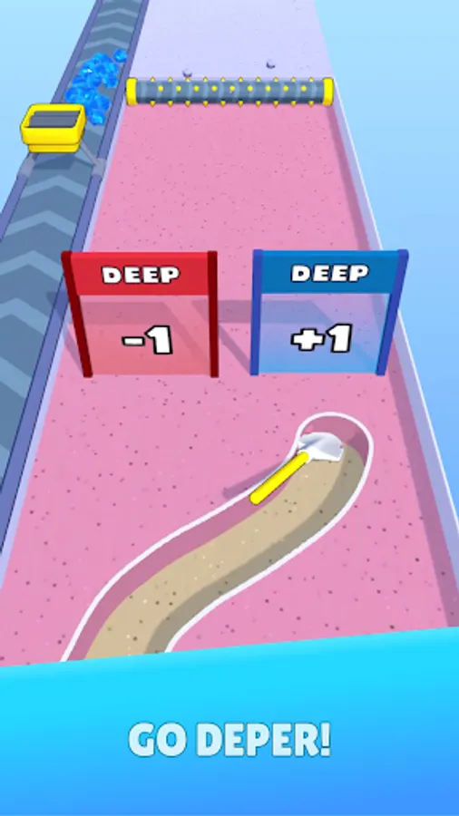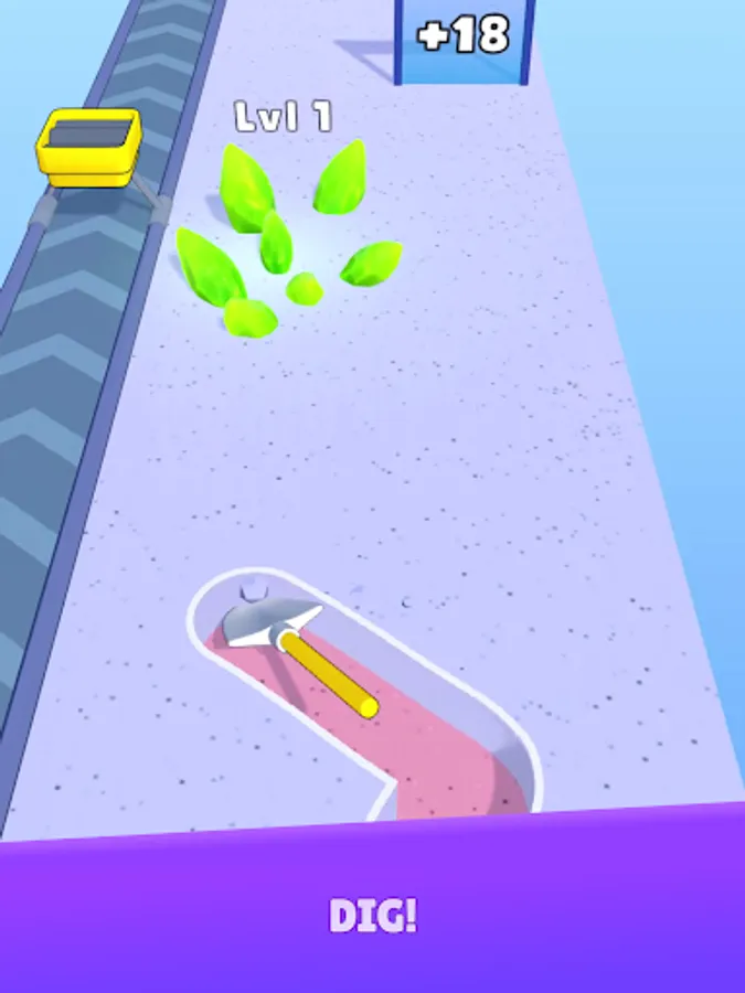 In Shovel Run 3D, your main objective is to dig your way through layers of dirt and rubble to reveal hidden gems. As you progress through the game, you'll encounter piles of gems that will serve as rewards for your excavating skills. Collect as many gems as you can to unlock exciting shovel upgrades that will enhance your digging prowess. With each upgrade, you'll be able to dig faster, uncover gems more efficiently, and reach even greater depths.