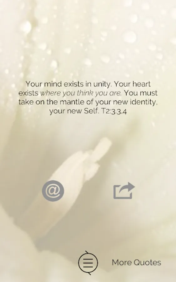Readers of A Course of Love often find, when they have a question or a challenge, or simply want elevation, that if they inwardly ask for guidance, they can open the book to a random page and find exactly what they are looking for. ACOL Access provides a similar function on a daily basis, providing a random quote from ACOL — a wonderful way to start the day.