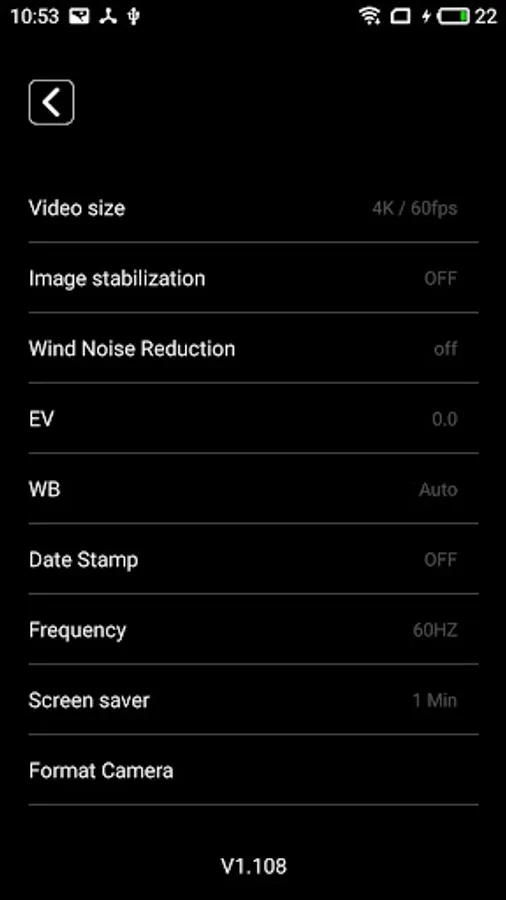 4. You can directly change the settings for the Action camera.