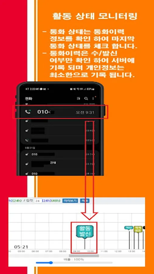 It is installed on the smartphone of the manager, collects the following user data in the background state, and sends it to the server to determine the 3-stage risk status, and the manager sees and manages the 3-stage risk status of the manager in the list status.