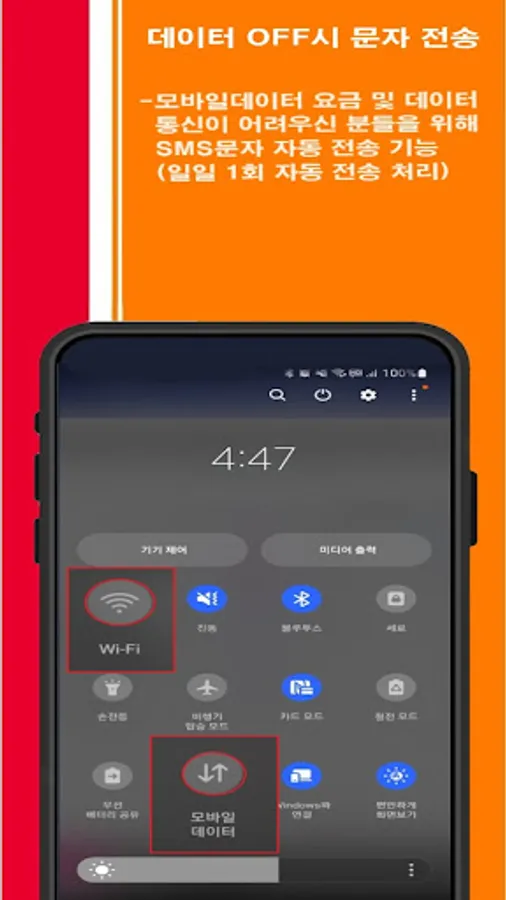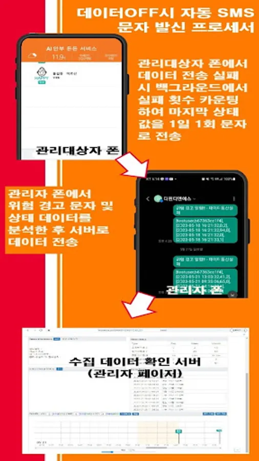 In addition, in order to reduce the burden on data communication for the low-income class, if data communication is turned off or data communication is impossible, the last user data collected every day is sent via SMS text message, so that the minimum text information can be viewed and the administrator's status can be identified.