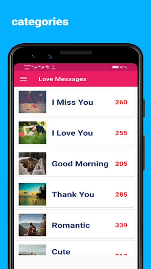 ⦁ MULTIPLE CATEGORIES OF LOVE QUOTES AND SMS