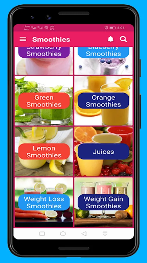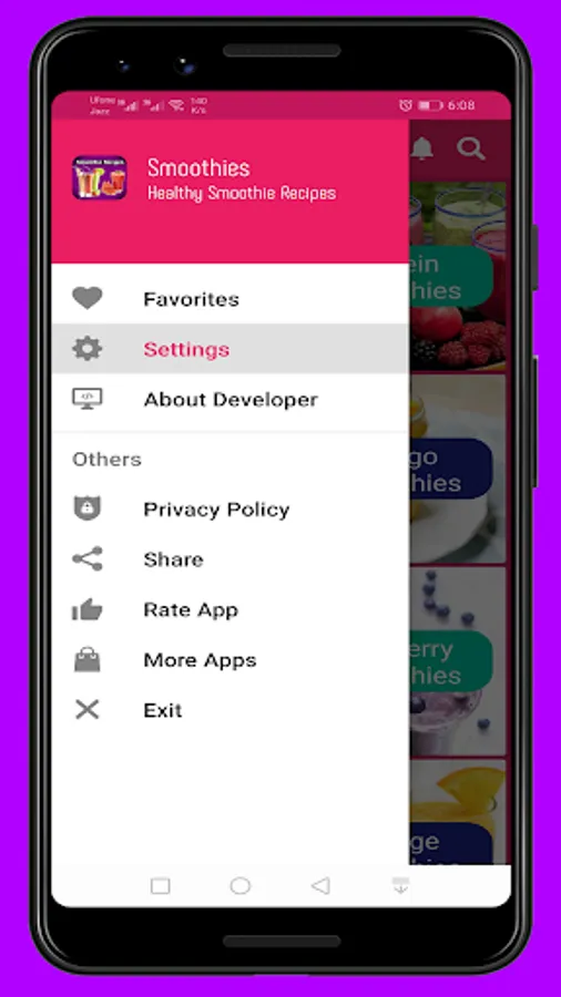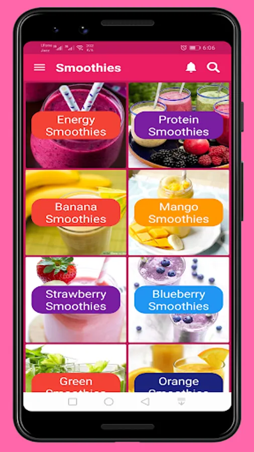 Our smoothies app is well organised and simple app where you can find the recipes by categories and can search smoothie recipes by entering the name of smoothie.