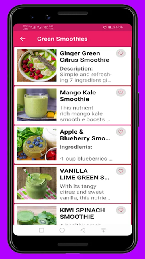 All smoothie recipes are describe in an easy way to make the smoothie easily and in short time.