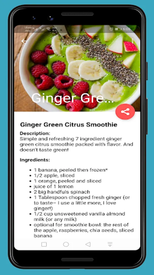 ⦁ User can share the smoothie recipe from app.