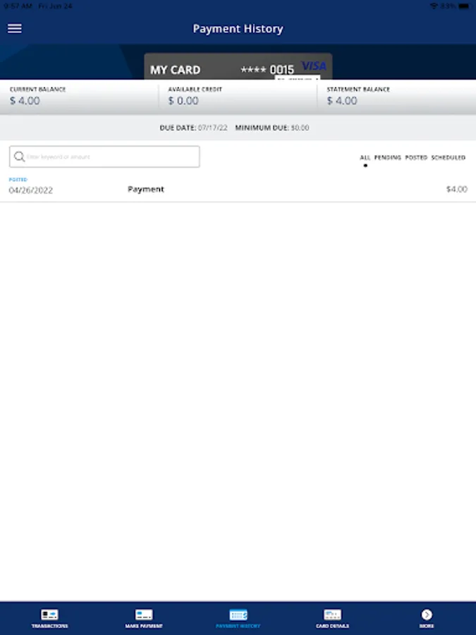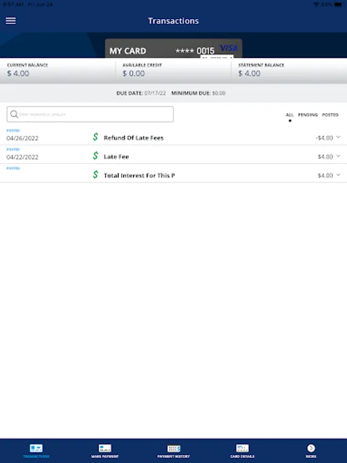 • View recent and pending transactions.