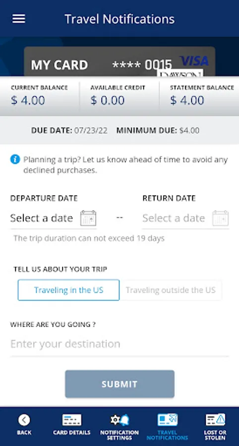 • Set travel notifications.