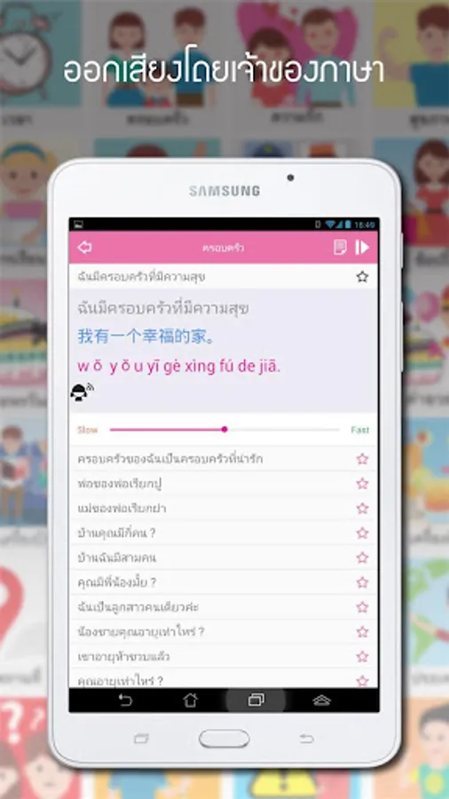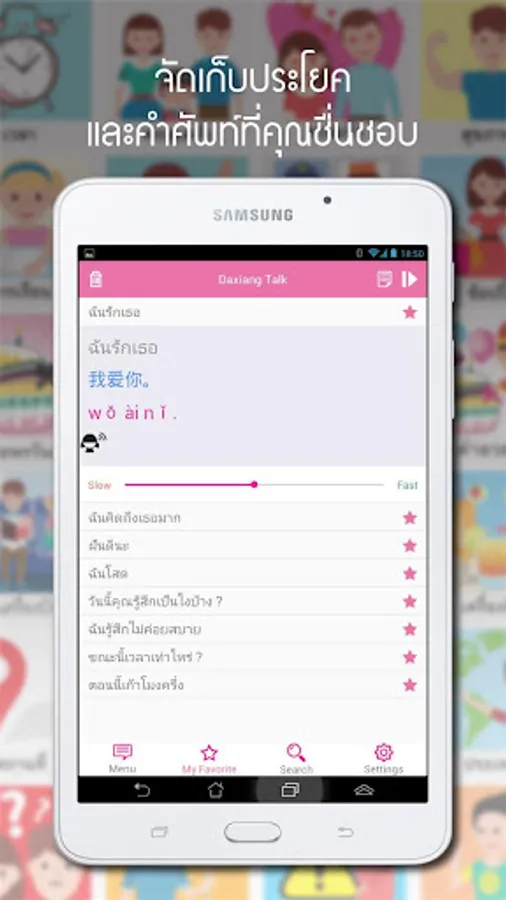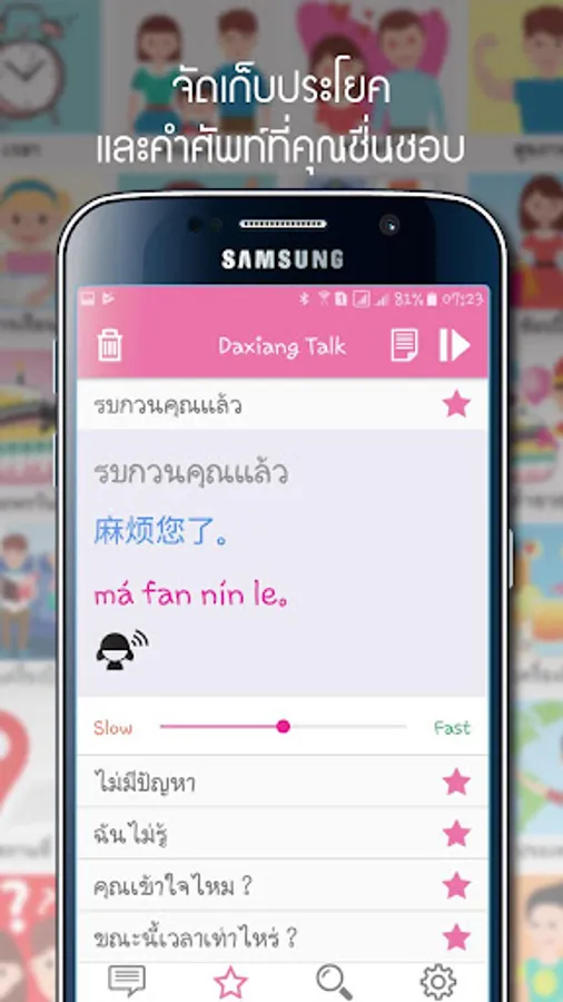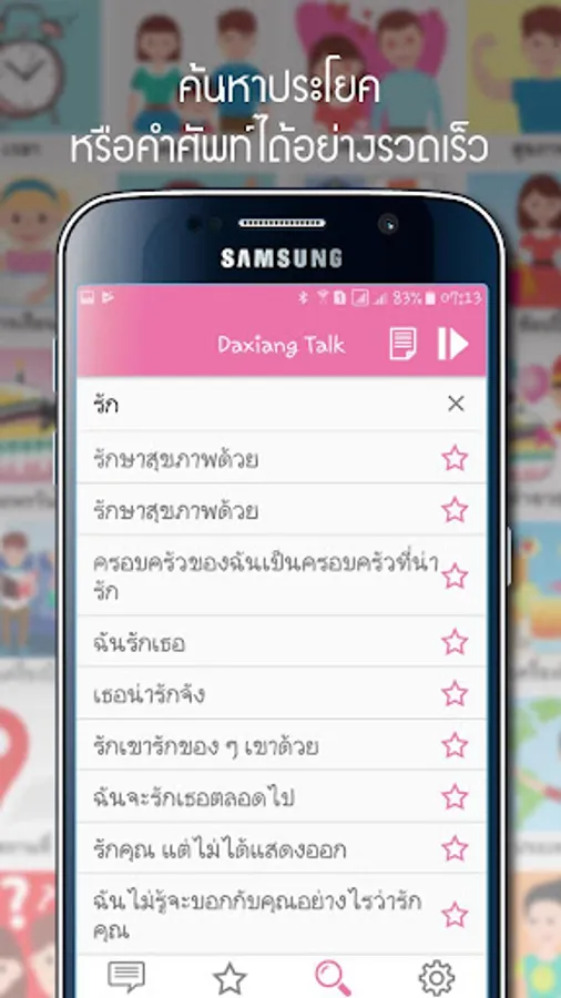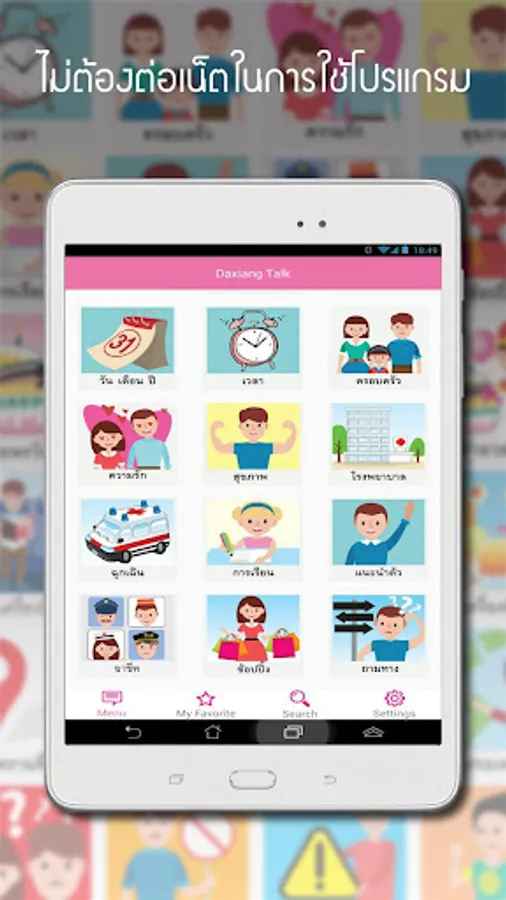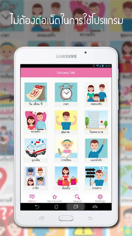Daxiang Talk - Conversation is an application that is used to drill Chinese conversation of sentences and words used in everyday life, simple sentences and vocabulary of over 800 words categorized with pronunciation spoken by native speakers. For those who want to learn conversational Chinese. Tourists, students and others interested in the Chinese language.
