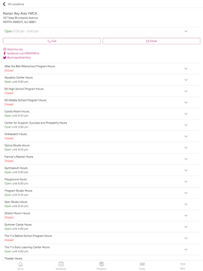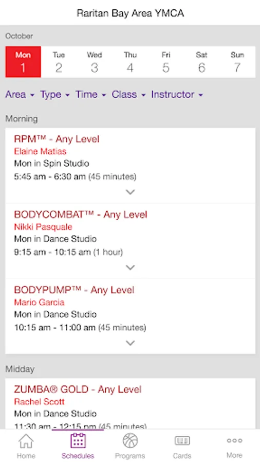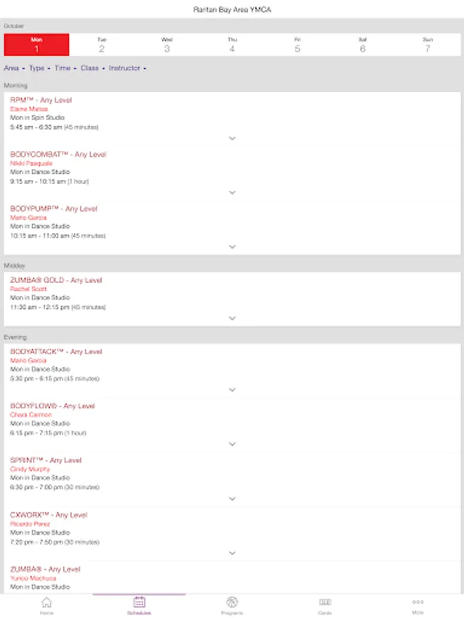 • Easily view schedules for each day and filter for the types of classes that you like.