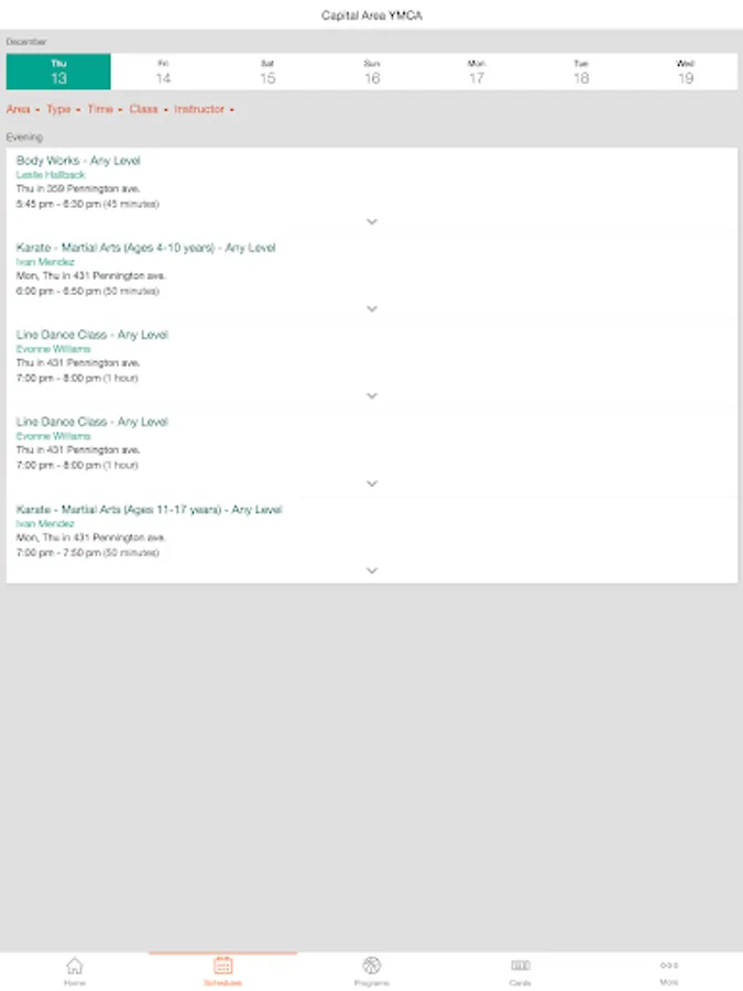 • Easily view schedules for each day and filter for the types of classes that you like.