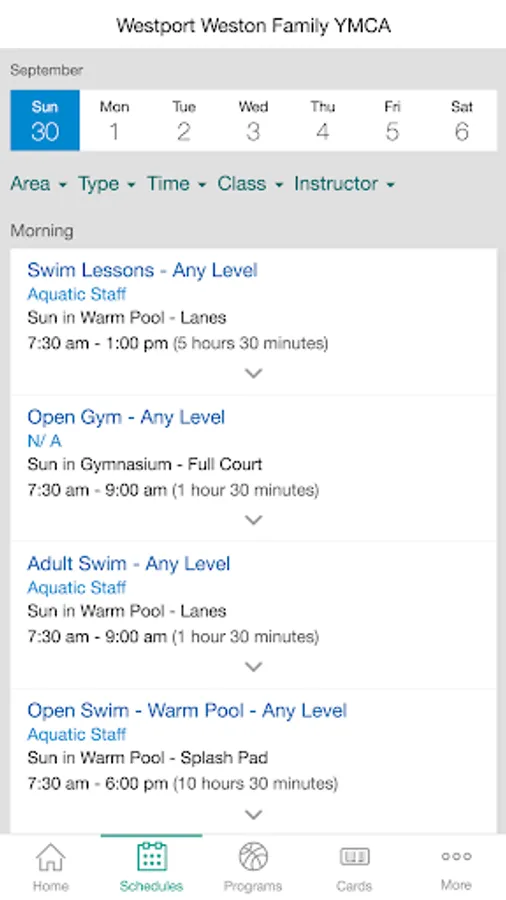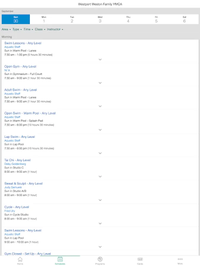 • Easily view schedules for each day and filter for the types of classes that you like.