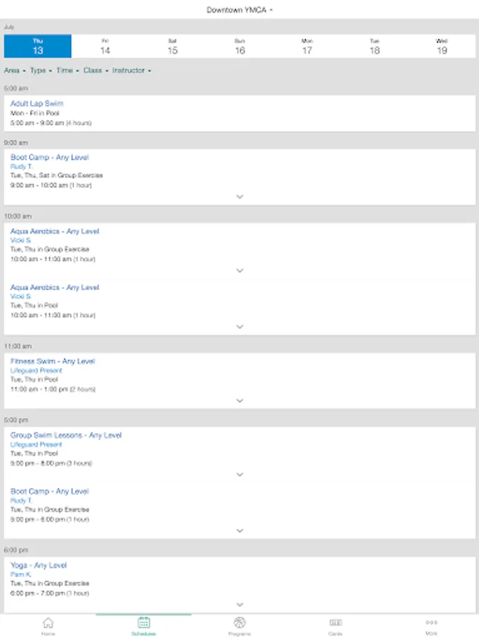 • Easily view schedules for each day and filter for the types of classes that you like.