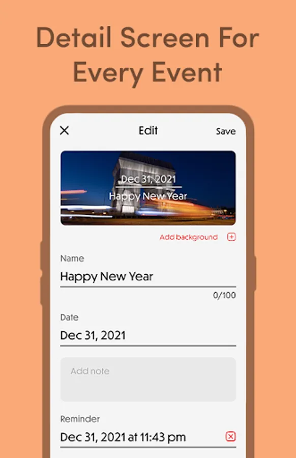 ✔️ Add Title: In the Days count down app users can add title for notification reminder.