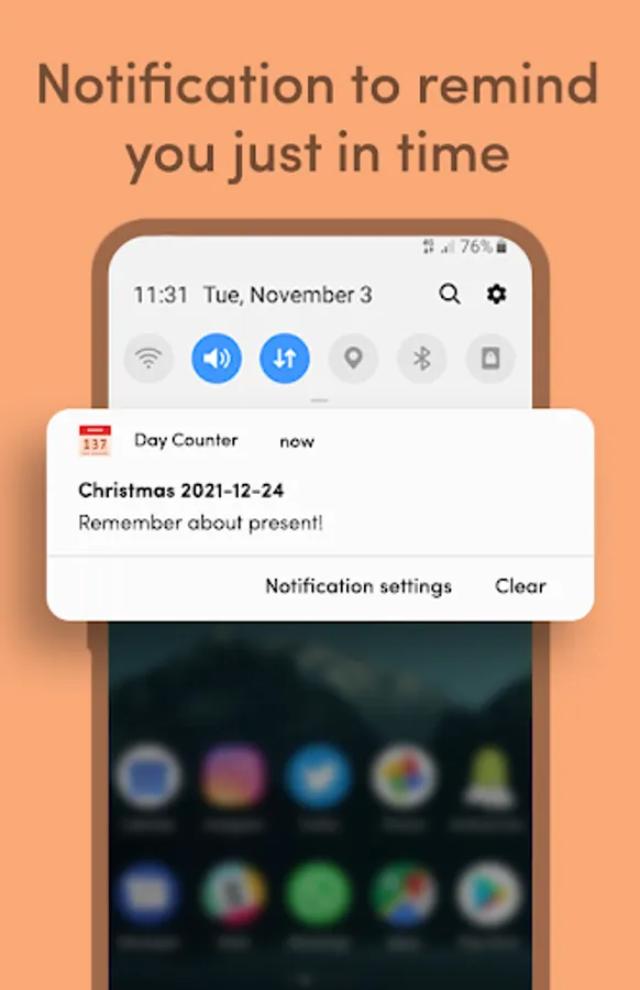 ✔️ Add reminder: For notification reminding you can set reminder in the Christmas countdown app.