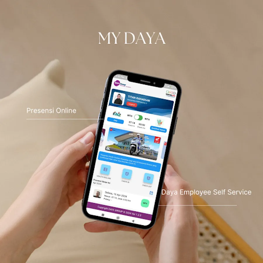 MY DAYA 2.0 is a mobile platform specifically designed to meet the Employee Self-Service (ESS) needs within the Daya Group. Its primary function is to manage and record employee attendance digitally, efficiently, and in real-time.