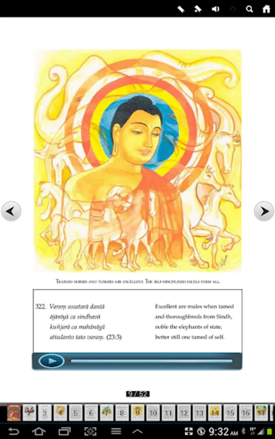 World’s largest edition of Dhammapada, this is illustrated with 423 especially commissioned works of art. The book represents the quintessence of Buddhism, embodied in 423 stanzas that represent the words of the Buddha. The wisdom implicit in these sacred verses is timeless and is universally applicable. This encompasses both spiritual and worldly situations. The book classified into 23 chapters is arranged to give the reader the original Pali in Roman characters and the translation of each stanza at two levels. The prose order of each stanza is provided, with the meaning of each word explained. The story, out of which the verses emerged, is also provided. A comprehensive commentary facilitates the understanding of the work in depth. The book comes in an attractive slip-case, with an illustration depicting one of the most serene images of the Buddha adorning the cover. This is available in Sinhala and Chinese versions as well.