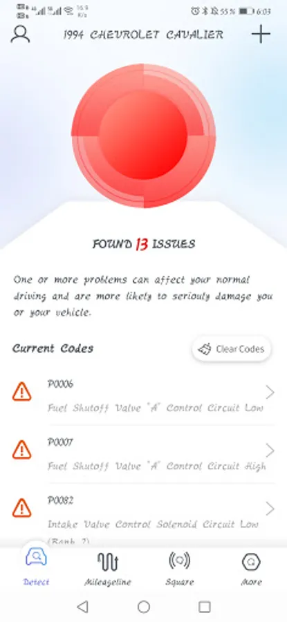 For each DTC, generate a report for your vehicle containing possible causes, reported fixes, and more.