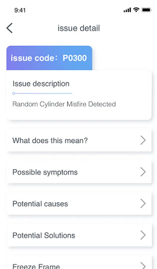 Freeze Frame:Can read the frozen frame data stored by the vehicle.