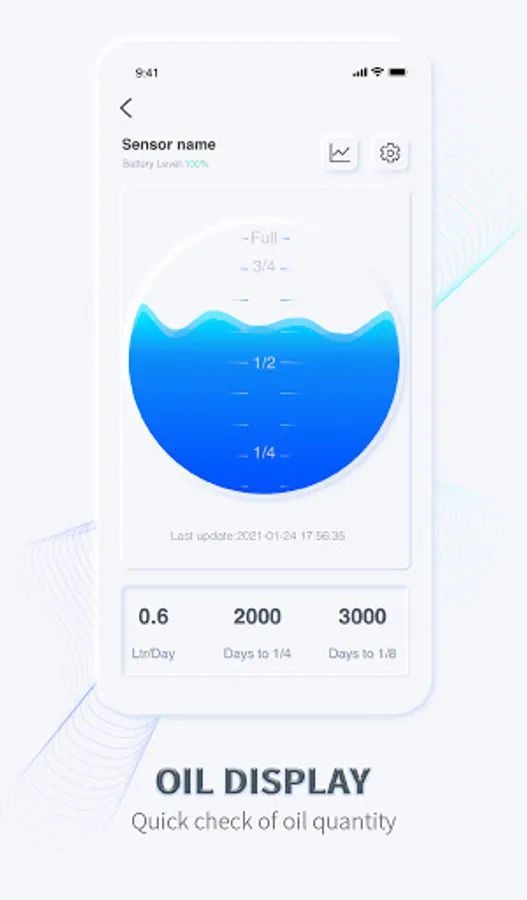 Usage record:Through the chart to record your heating oil usage on an hourly basis, you can use the chart to see how your heating oil is used in that day, week, month and year.