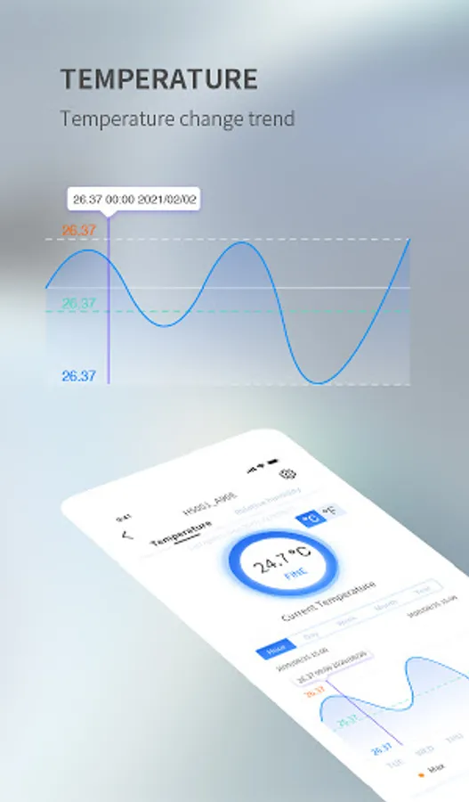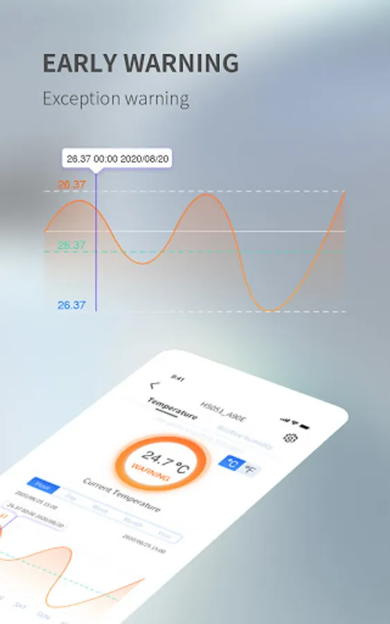 WiFi Wireless Monitor: Remotely monitor temp and humidity with the RT-METER app WiFi connection; Smart Message Alerts: Create preset temp or humidity ranges, you'll be notified instantly on your smartphone if levels fall out of range;Data Storage: Provide 20 days of hardware storage and permanent cloud data storage.