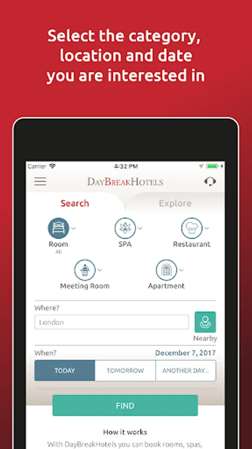 Using DayBreakHotels is very easy. The app offers you the possibility to: