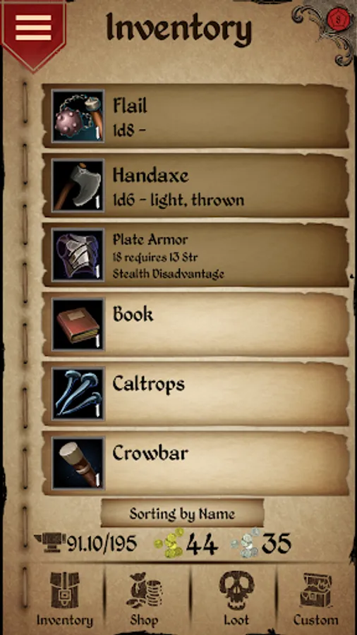 - Magic (track Mana by Value or Slots, and use notes for spells)