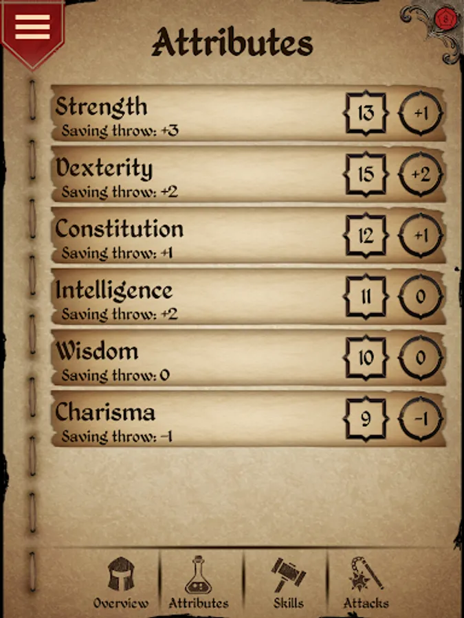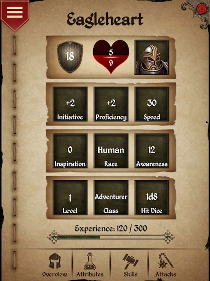 Intended for people familiar with tabletop RPG games, this app has several features to help you with tracking your character's data: