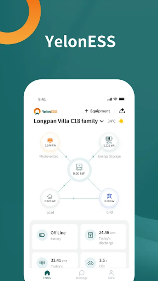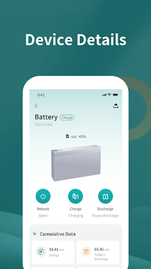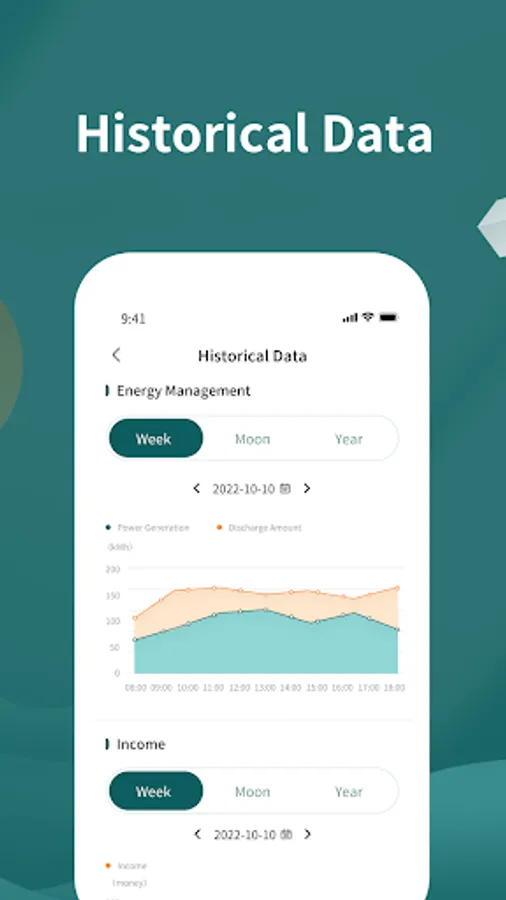 ● Check the current and history data of generated power, charge and discharge, and carbon emission reduced