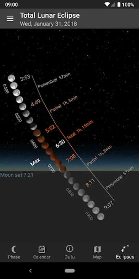 â–¶ Displays all lunar eclipses, with exclusive visualization