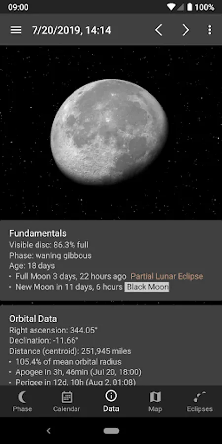 â–¶ Shows supermoons, blue moons, and black moons