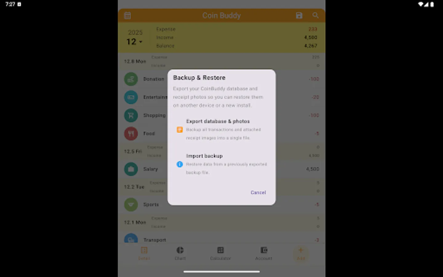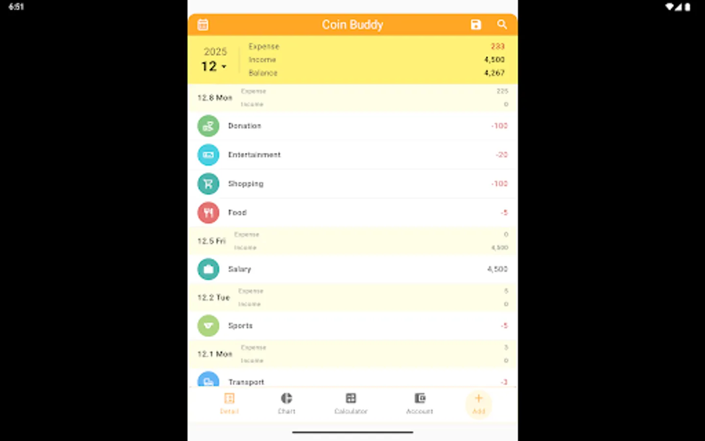 Whether you're logging expenses, income, transfers, managing accounts, or reviewing your assets, calendar details, and spending analysis—CoinBuddy makes personal finance simple and enjoyable.