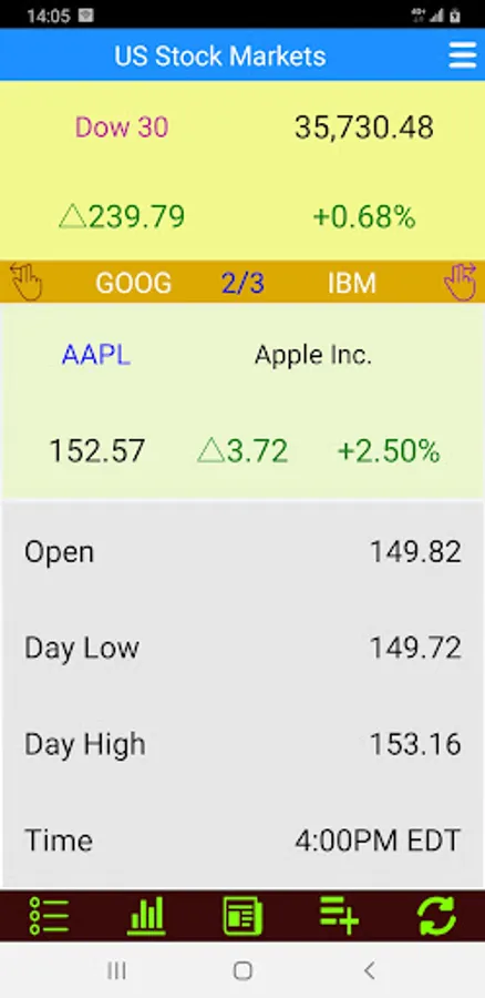 This app is provided US Stock Exchange with Large Font. It will bring you streaming real-time quotes in US Stock Markets. It synchronizes with google finance data, allows quick access to stick quotes, shows the many kind of stock charts and lets you view the latest market and company news. It is a very useful and friendly for tracking all stocks from Nasdaq, New York Stock Exchange (NYSE), and American Stock Exchange (AMEX) in United States. It is hoped that this app can help follow the stocks you care about most and get the related stock information, news and chart. Access real-time stock information and investment.