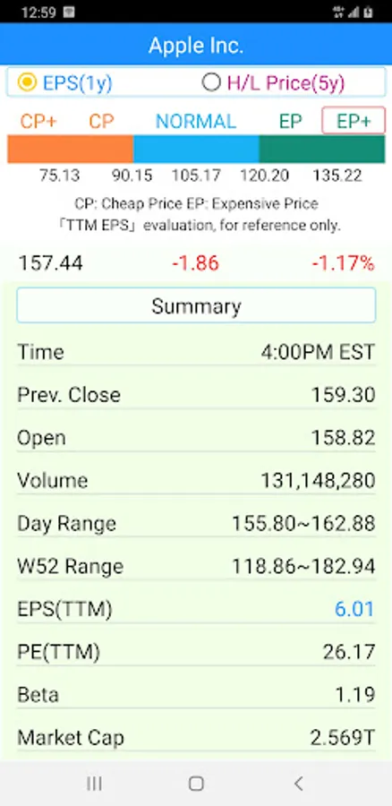 + A large-font and clear text for stock quotes.