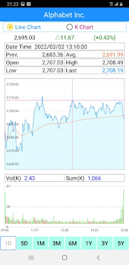 + Stock charts are supported including 1W, 1M, 3M, 6M, 1Y, 3Y and 5Y.