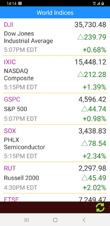 + Support Dow Jones Industrial Average, NASDAQ Composite and S&P 500 stock indices.