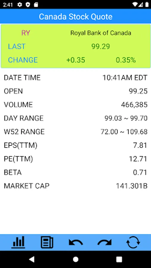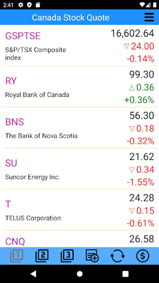This stock app brings you Canadian stock quotes, trend chart, company news and your portfolios. It synchronizes with web finance data, allows quick access to stick quotes, shows trend charts by website and lets you view the latest market and company news. It is a very useful and friendly for tracking all stocks from Toronto Stock Exchange(TSE), Toronto TSX Ventures Exchange(CVE) and Canadian Securities Exchange(CNSX).