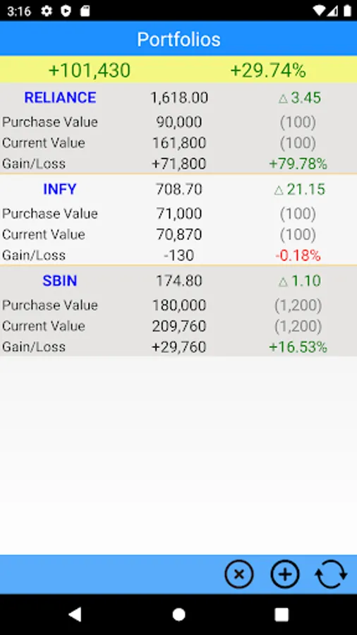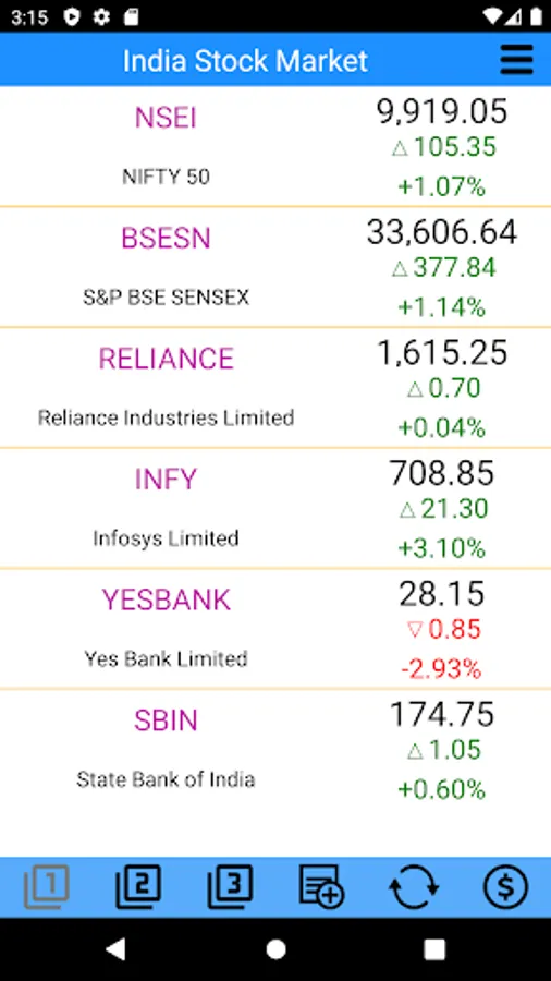 This app brings you to track stock Quotes, News, Chart and Portfolios from India Stock Markets. NSE and BSE stocks, ETFs and Funds are supported.