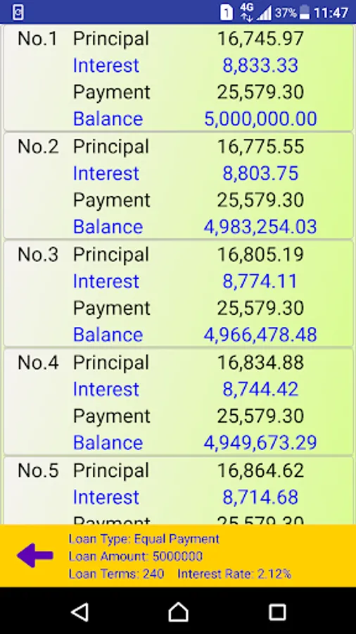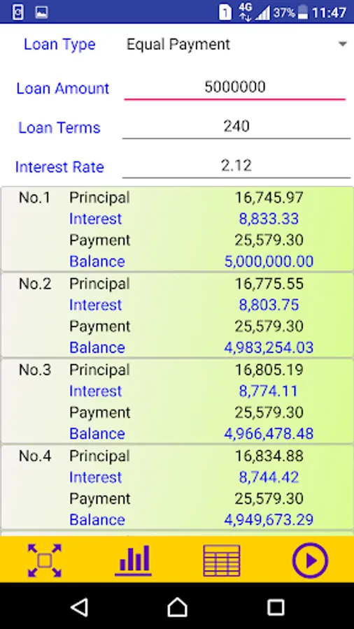 Easy Loan Calculator is very easy to calculate your loan available on Google Play Store. Only enter your loan amount, loan term, and loan interest rate and the result could be shown clearly. The main feature of Easy Loan Calculator is shown as follows:
