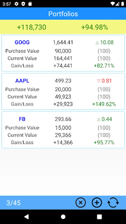- Ability to search and add the stocks in your list.