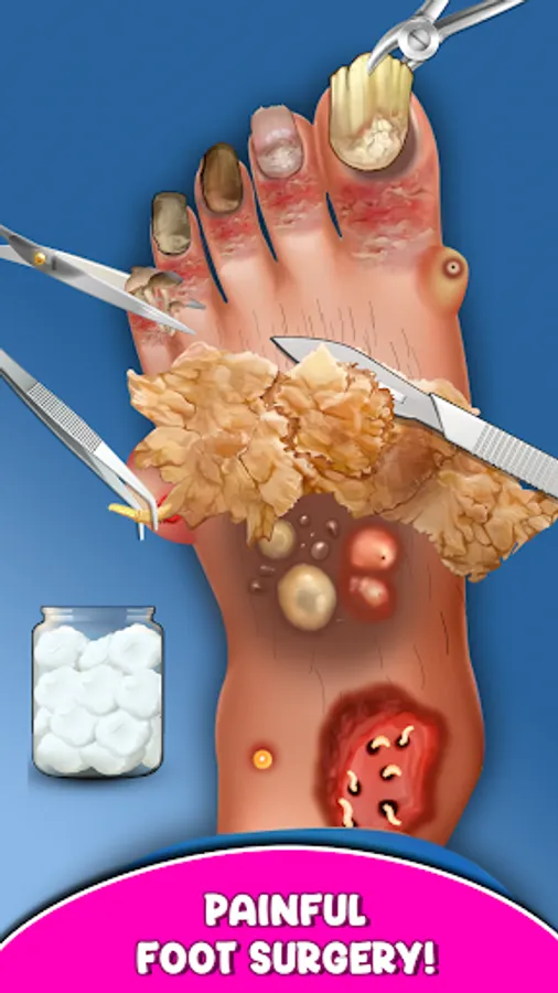 In this surgery game, it's a tonne of joy to assist patients in getting better. In hospital games, you can pop blisters with your hand, spray wounds, remove calluses with a foot file, and peel dead skin from your feet with a foot file.