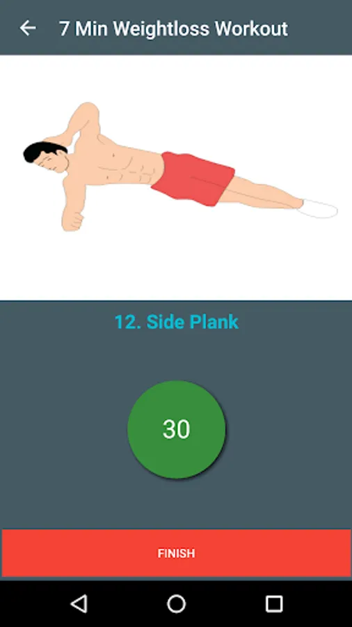 The seven minute weight loss workout has 12 exercises to be done for 30 seconds, with 10 second breaks between each exercise. Body weight workout plan designed to burn fat in the shortest time of 7 minutes.