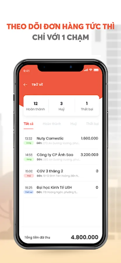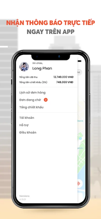 Shipper easily receives notifications from shop owners and new order notifications right on the app, helping to quickly update information on bills of lading.